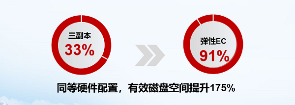 华为超融合通过块存储弹性EC显著提升存储效率,实现高达91%的利用率,远超传统三副本的33%。在节点故障时,弹性EC能够自动调整数据冗余级别,以保持高可靠性,无需降级或回拷,确保数据安全。该特性适用于金融和制造等对数据可靠性要求极高的场景,优化数据布局管理。在同等硬件配置下,能够为企业节省高达175%的存储空间。