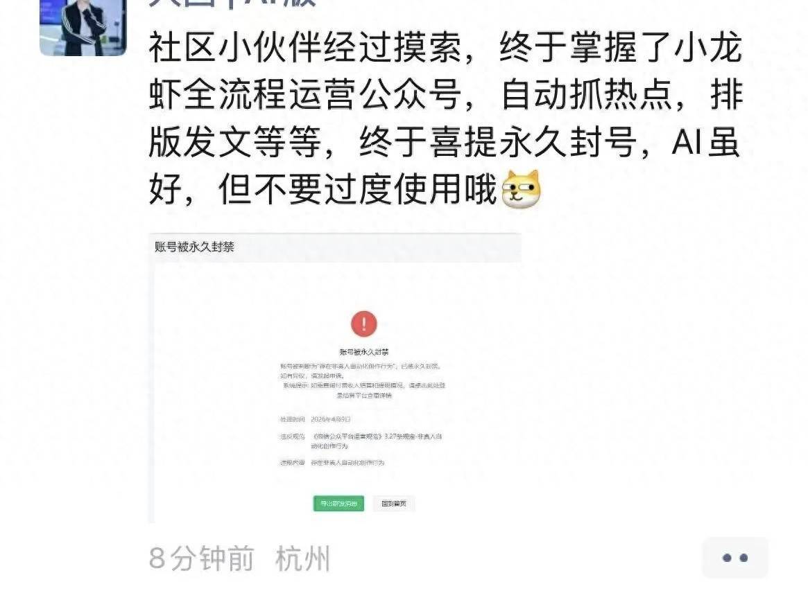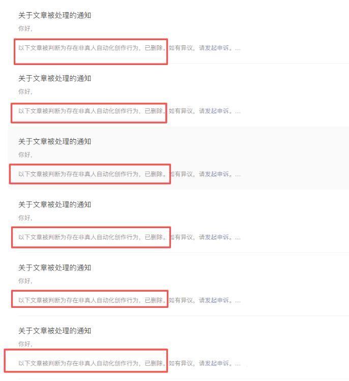 另有运营者反映,自己纯手写的关于AI辅助撰写公众号内容的教程文章,也接连被平台删除。