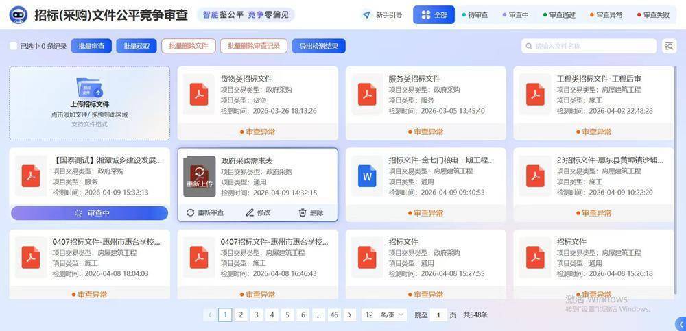 此次AI智能“体检”聚焦招标文件编制核心环节,通过构建覆盖国家级、地方性政策法规的规则库,设置80余个合规检测点,运用自然语言处理等技术,对招标文件进行全方位、智能化筛查,精准识别不合理资质要求、隐性排斥条款、程序漏洞等五大类合规问题,1分钟左右生成风险评估报告,提供整改建议。